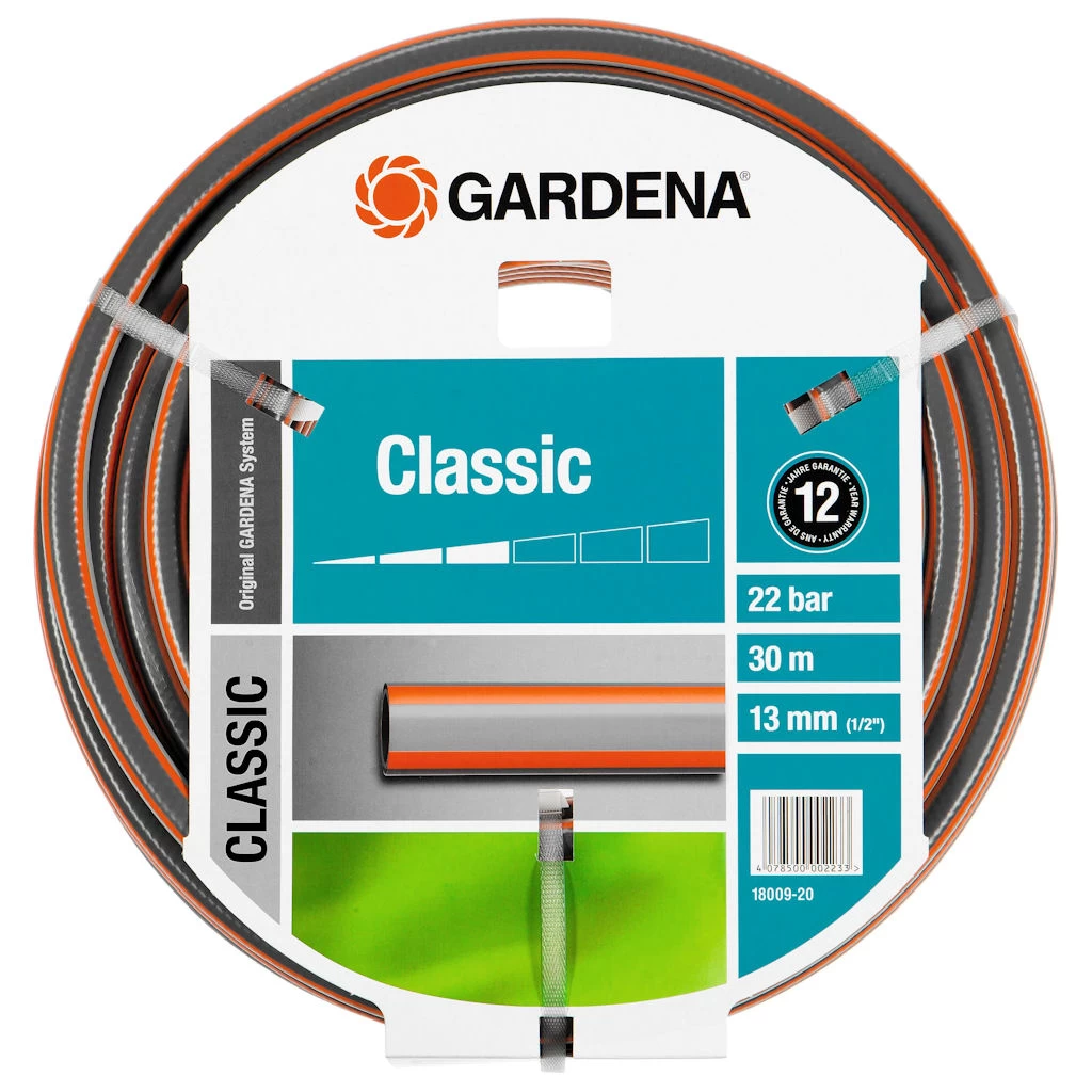 Deze Gardena Classic Tuinslang van 30 meter heeft een diameter van 13 mm (1/2″). De slang heeft een barstdruk van 22 bar, is UV-bestendig en is van PVC en hoogwaardig kruisweefsel. Op de slang zit een garantietermijn van 12 jaar.