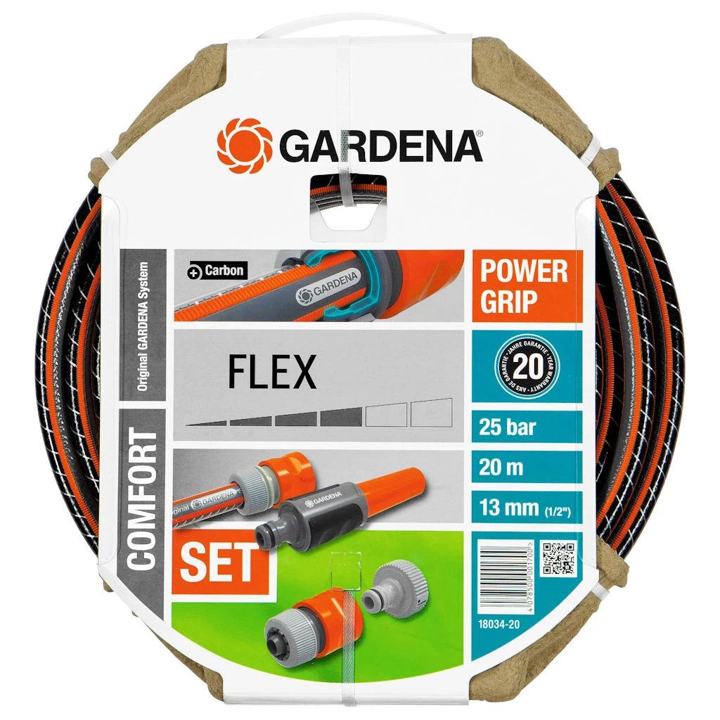 Gardena Comfort Flex Powergrip Tuinslang 20 meter met OGS accessoires.