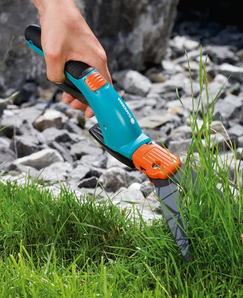 Met de draaibare GARDENA Comfort grasschaar kunt u de graskanten van het gazon gemakkelijk en precies bijwerken. Ook niet-toegankelijk plekken in de tuin zijn bereikbaar. Door het draaimechanisme van 360° kunnen zowel linkshandige als rechtshandige mensen comfortabel werken. De ergonomisch gevormde handgreep met elementen van zachte kunststof maakt snoeien gemakkelijk. De messen met antikleefcoating en golfsnede zorgen dat u nauwkeurig en op een consistente hoogte kunt snoeien. Dankzij de speciale gelagerde messen kunt u gelijkmatig en krachtig snoeien over de volledige lengte van het mes. De geleiders zorgen voor gemakkelijke begeleiding en een consistente snoeihoogte. U kunt de grasschaar snel en eenvoudig vergrendelen met de praktische enkelhandige vergrendeling.