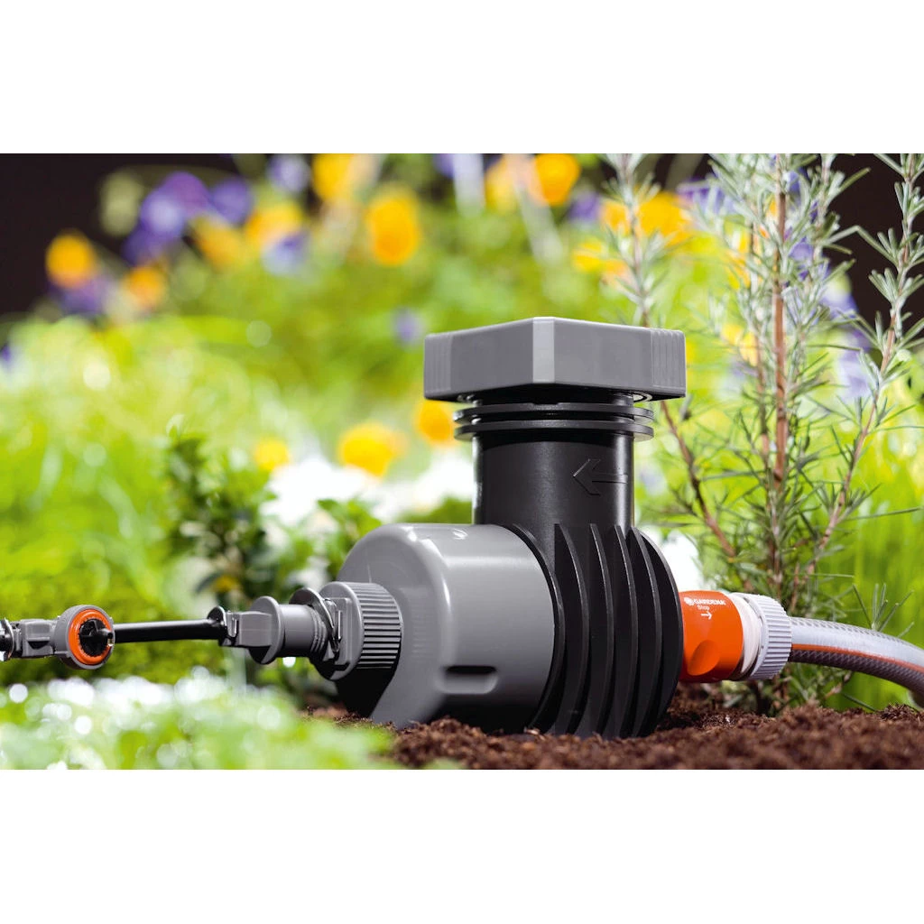Het GARDENA Hoofdapparaat 2000 is het startonderdeel van het GARDENA Micro-Drip-System. Het hoofdapparaat verlaagt de startdruk tot een bedrijfsdruk van ongeveer 1,5 bar voor optimale bediening van de aangesloten druppelaars en sproeiers. De watertoevoer is ongeveer 2.000 liter per uur. Dankzij het grote filter wordt het water optimaal gefilterd. Het hoofdapparaat kan direct worden aangesloten. Dankzij de gepatenteerde ‘Quick & Easy’-aansluittechnologie is de installatie van het hoofdapparaat zeer eenvoudig.