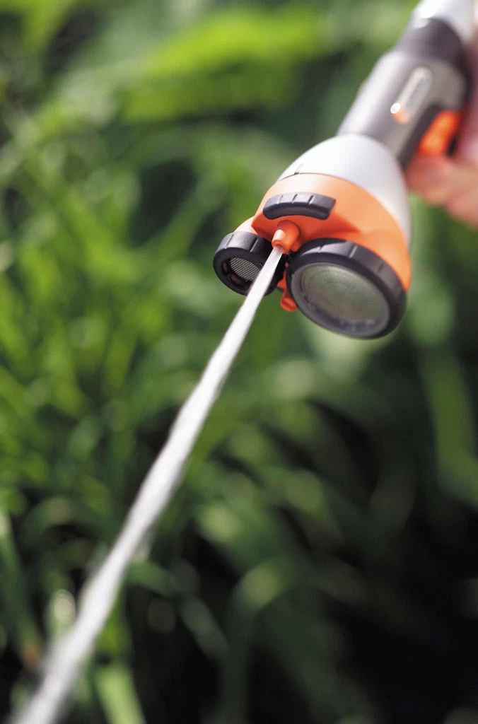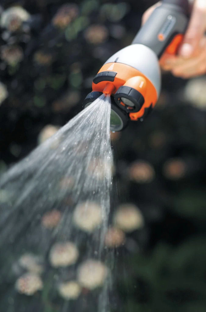 Dit model broes is plezierig in gebruik en heeft een degelijk metalen en kunststof ontwerp met een robuuste kop. Met zijn vier verschillende waterstraalvormen is het feitelijk voorbestemd voor diverse besproeiings- en schoonmaakklussen. Kies uit broesstraal, perlatorstraal, volle straal en vlakke straal. Behalve de waterstraalvorm kan ook de waterafgifte individueel en traploos worden geregeld. U kunt precies die vorm en doorvoer kiezen die u voor uw toepassing nodig heeft. Dankzij de optimale gewichtsverdeling en de zachte kunststof elementen ligt de metalen GARDENA Premium multifunctionele broes goed in de hand. Met de impulsgreep is de broes eenvoudig te starten. Voor langduriger gebruik kan deze worden vastgezet met het oog op aangenaam sproeien zonder dat u steeds een knop hoeft in te drukken. Voor meer afwisseling bij het sproeien.