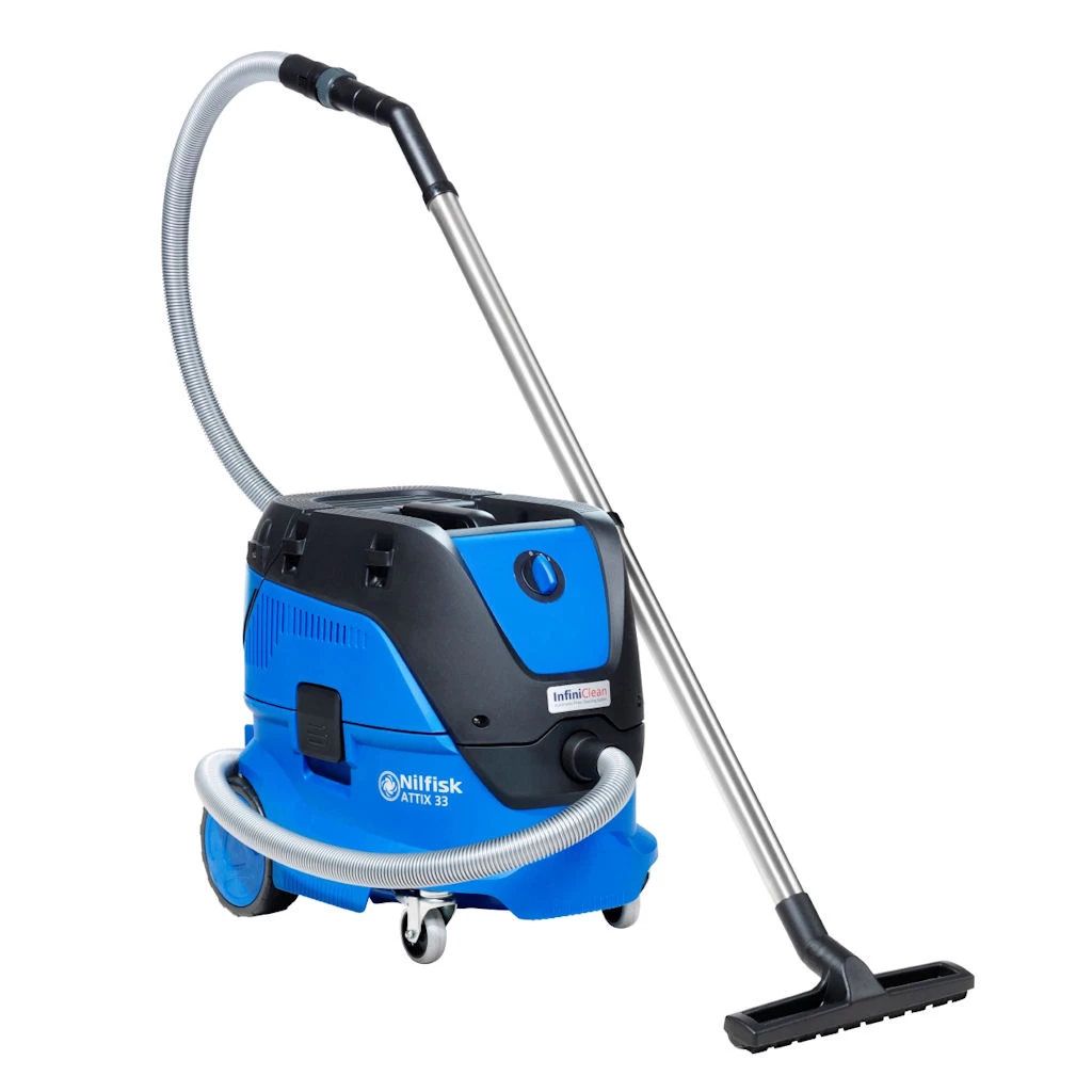 De ATTIX 33 stofzuigerserie zet een nieuwe norm wat betreft het ontwerp en het aantal kenmerken voor het Nilfisk nat- en droogzuigersportfolio. Met een innovatief filtratiesysteem, verbeterde werking en een robuust ontwerp, biedt deze lijn een superieure oplossing voor professionele klanten die op zoek zijn naar een veilige en betrouwbare machine. De ATTIX 33 heeft meer zuigkracht, een afgedicht stofsysteem, automatische filterreiniging en diverse andere gebruikersvoordelen die zijn ontwikkeld om de zware omstandigheden te weerstaan op bouwlocaties en in andere branches.