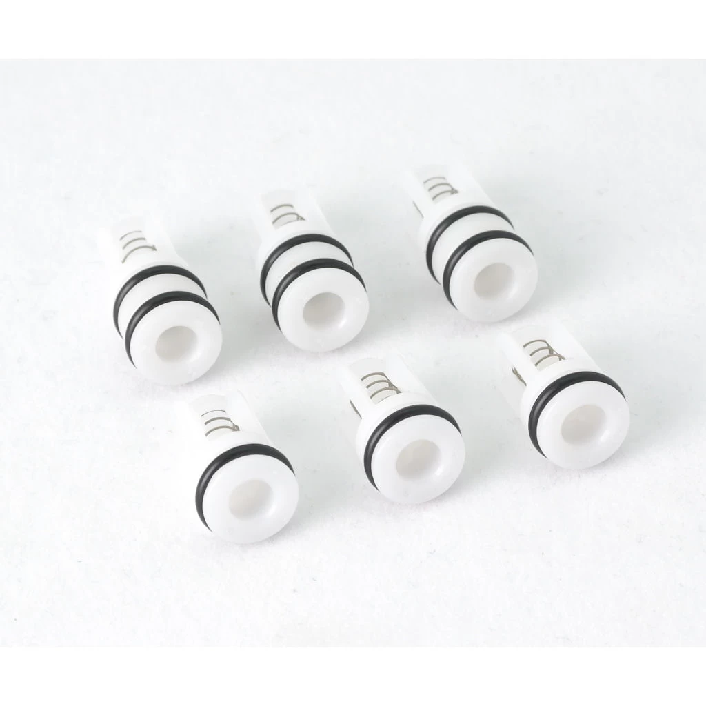 De set bestaat uit 3 lage- en 3 hogedrukkleppen. De zwarte o-ringen dienen voor het plaatsen ingesmeerd te worden met vaseline.