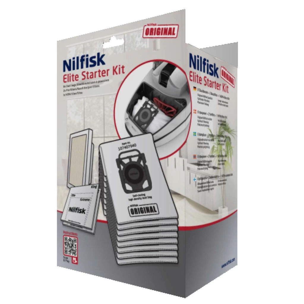 De Nilfisk Elite Starter Kit biedt veel voordeel.Het voordeel loopt op tot € 20,00 De verpakking van dit pakket bestaat uit 8 stofzuigerzakken, een HEPA 14 filter en 2 motorfilters. De set kan gebruikt worden op alle Nilfisk Elite stofzuigers.