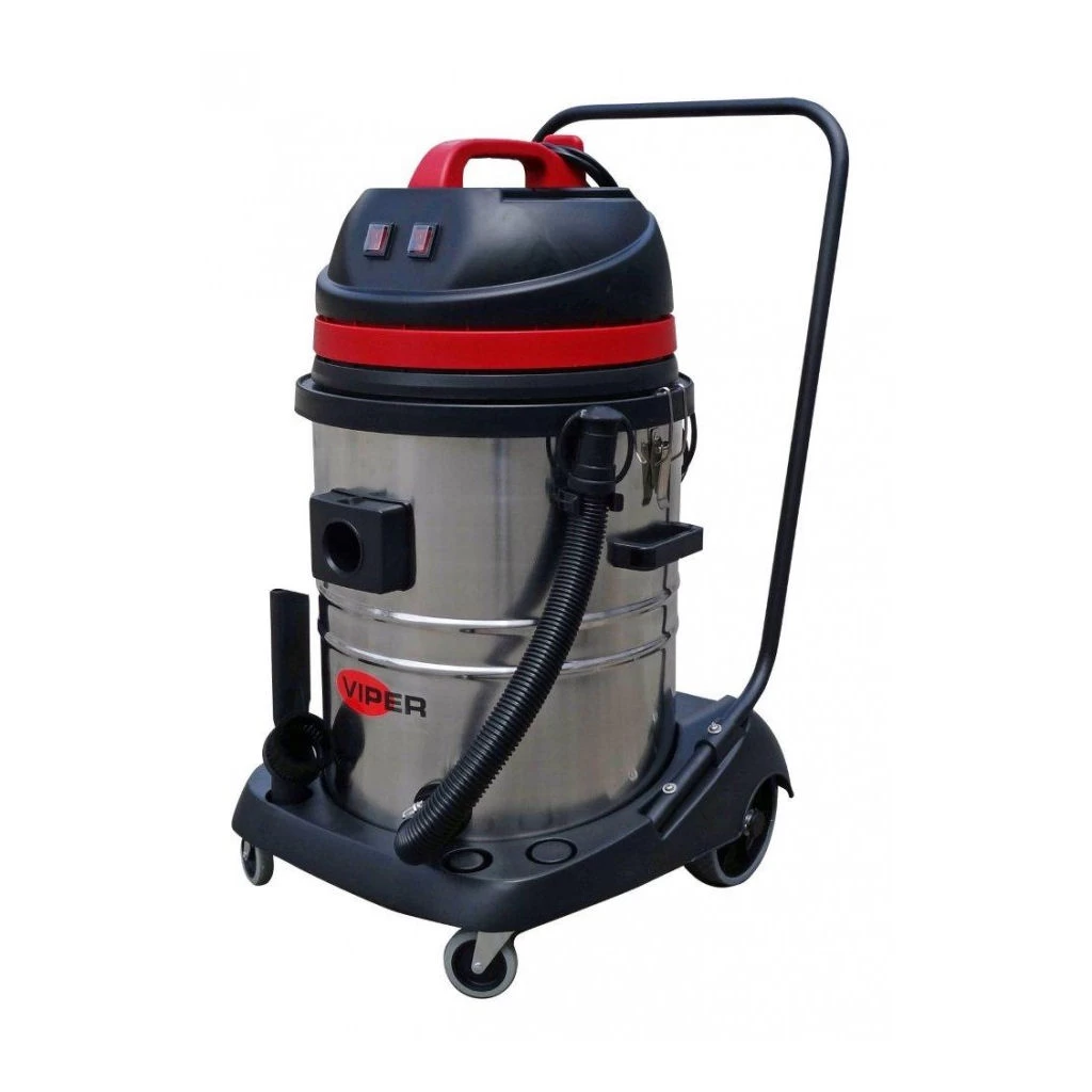 De VIPER LSU stof-/waterzuiger serie heeft een modulair ontwerp met uiteenlopende tankinhoud en aantal motoren. De tankinhoud van de VIPER LSU 255 stof-/waterzuiger is 55 liter, en hij heeft twee motoren. U kunt kiezen voor een roestvast stalen tank of een rode kunststof tank. U kunt eenvoudig zien of de tank gevuld is met water of niet als de tank vervaardigd is van transparante kunststof. Hij is uitgerust met een afvoerslang, en u kunt de tank eenvoudig legen zonder de motor te verwijderen. Hij heeft grote achterwielen en draaiende voorwielen die hem licht en gemakkelijk wendbaar maken. De VIPER LSU 255 stof-/waterzuiger wordt standaard geleverd met de volgende accessoires: spleetmondstuk, plumeau, zuigmond voor nat zuigen en zuigmond voor droog zuigen.